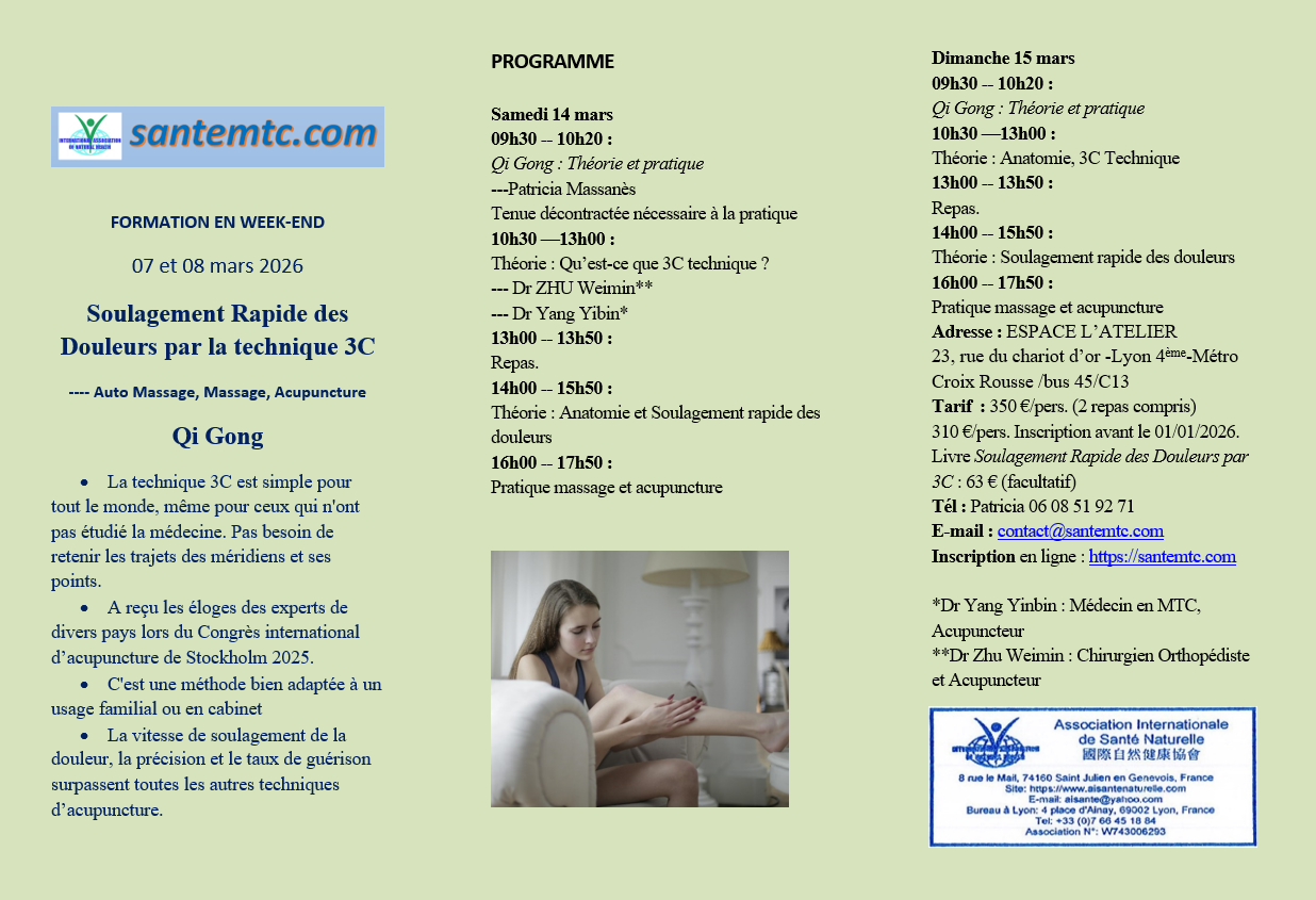 On vous conseille d'acheter le livre Soulagement Rapide des Douleurs par 3C, si vous voulez, veuillez l’acheter avant la formation sur notre site : https://santemtc.com.