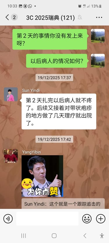 Je viens tout juste de recevoir une patiente souffrant de lombalgie. Par curiosité, j’ai essayé la méthode des « 3C » des professeurs Zhu et Yang — et le résultat a été tout simplement magique, sans aucune exagération ! J’étais fou de joie, ému et émerveillé ! Le patient est encore allongé sur la table, mais je ne pouvais pas attendre avant de partager cette expérience !