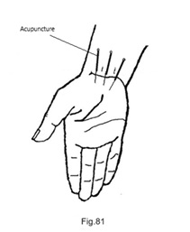 Pour traiter la douleur au talon, selon la Fig.31, les points d'acupuncture de la main gauche sont également les points d’acupuncture de Dong (Fig. 81). Ils sont identiques à ceux utilisés dans la technique 3C. La différence est que, selon la technique 3C, vous pouvez utiliser une ou deux aiguilles, avec un effet similaire.
