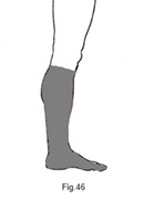 Cicatrice chirurgicale visible sur la malléole externe gauche. Rougeur et léger œdème du pied, de la cheville et de la jambe gauche (Fig.46), avec une température locale plus élevée par rapport au côté sain, et une sensibilité douloureuse à la pression.