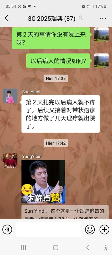 Un grand merci pour la brillante conférence que vous avez donnée hier ! Vos nouvelles approches nous ont vraiment ouvert les yeux : elles nous ont non seulement beaucoup inspirés, mais ont également élargi nos horizons de réflexion. Votre exposé, à la fois clair et approfondi, nous a permis d’acquérir une compréhension toute nouvelle de l’acupuncture dans le traitement des douleurs. 🙏🙏🙏💪💪💪