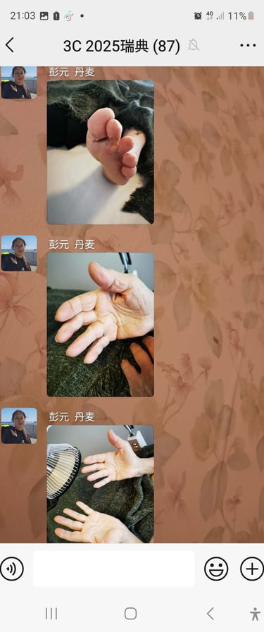 Après l’insertion des aiguilles, la douleur a nettement diminué. Comme la douleur se déplaçait, nous avons continué à rechercher les points correspondants sur le pied et à pratiquer des insertions superficielles supplémentaires. Au bout de 5 minutes, la douleur dans les deux mains avait complètement disparu. Nous avons convenu d’un rendez-vous de suivi dans deux semaines. Je continuerai à observer et à suivre l’évolution, et je partagerai les résultats avec vous tous. Merci ! [Shake] [Coffee] [Rose]